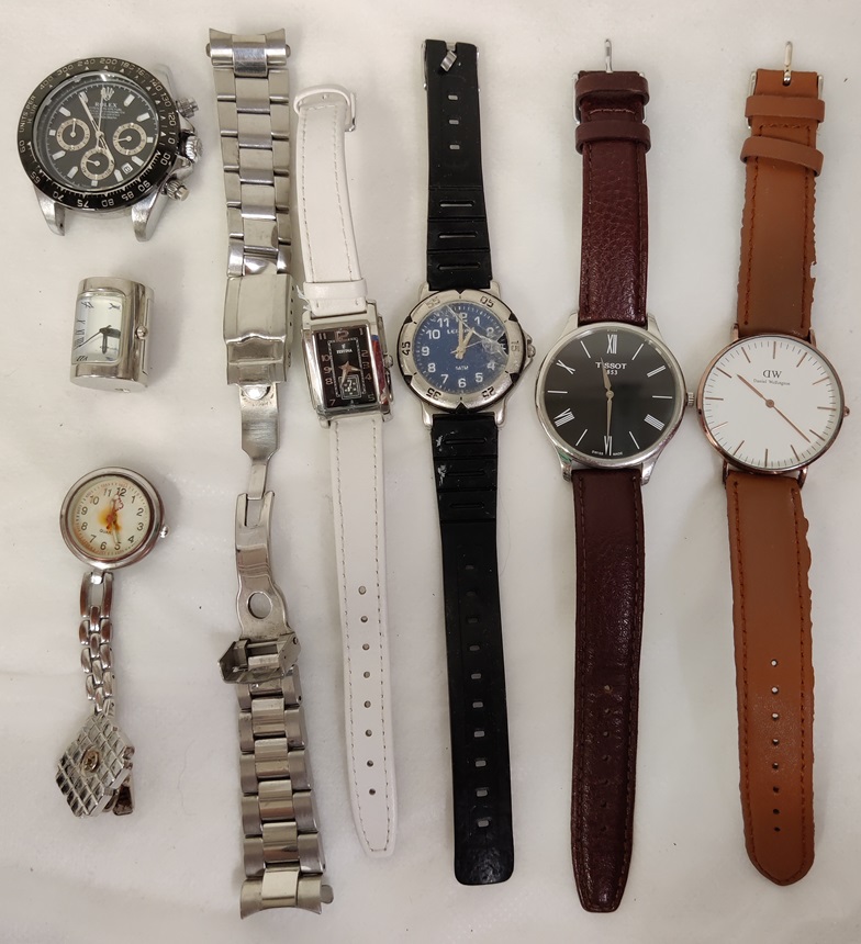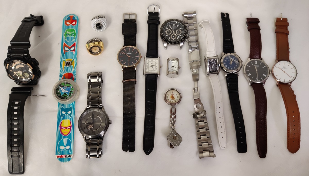 14 kpl erilaisia ranne- ja sormikelloja ja kellojen osia, mm. Fossil bq2647, Casio, Festina