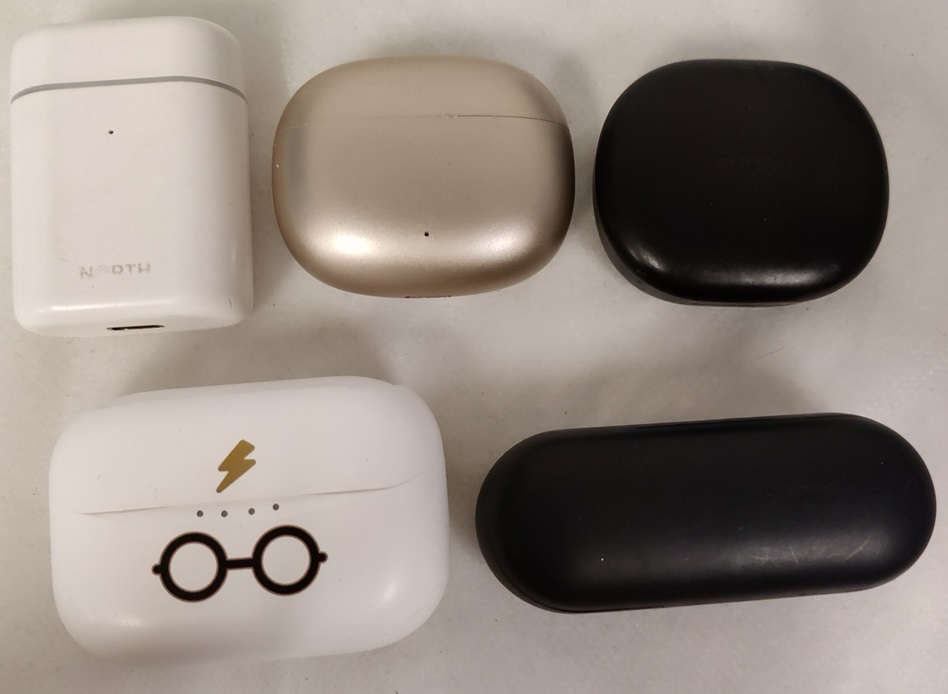 5 kpl sekalaisia nappikuulokkeita, mm. OTL TWS EARPODS, Xiaomi Redmi Buds 4 Lite ja Andersson TEW-1000, kaikki testattuja ja toimivia