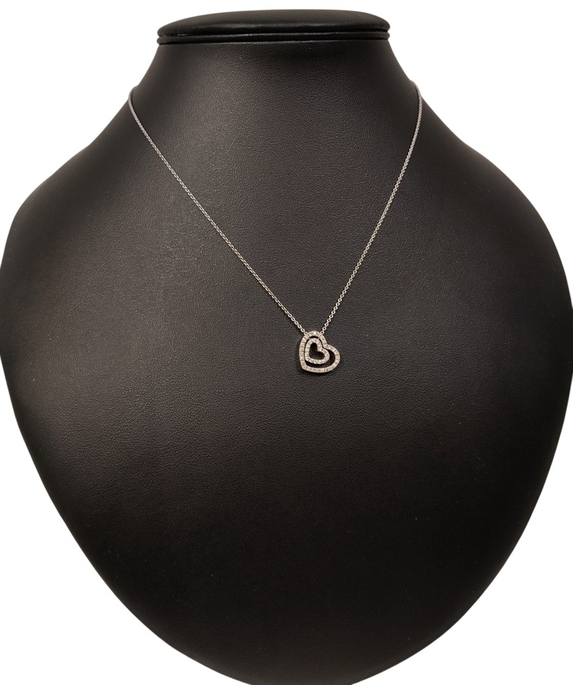 Hopeinen 925 kaulakoru tuplasydänriipuksella, joka kivikoristeltu, ketjun pituus n. 43 cm, riipusta ei saa pois ketjusta