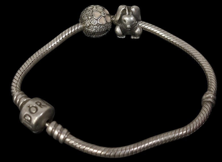 Pandora rannekoru, jossa Bunny Rabbit ja kukkahela, pituus n. 17 cm