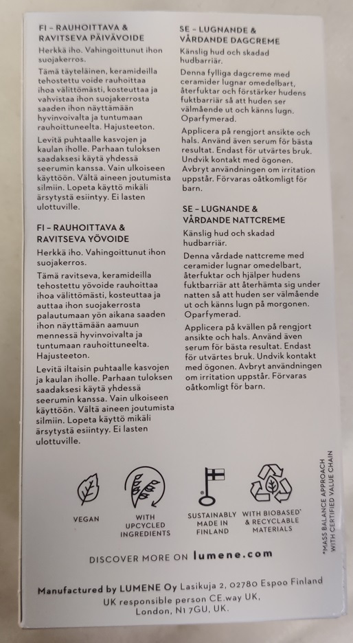 Lumene Nordic Sensitive (herkkä) Rich Day Cream ja Rich Night balm, UUSI TUPLAPAKKAUS!
