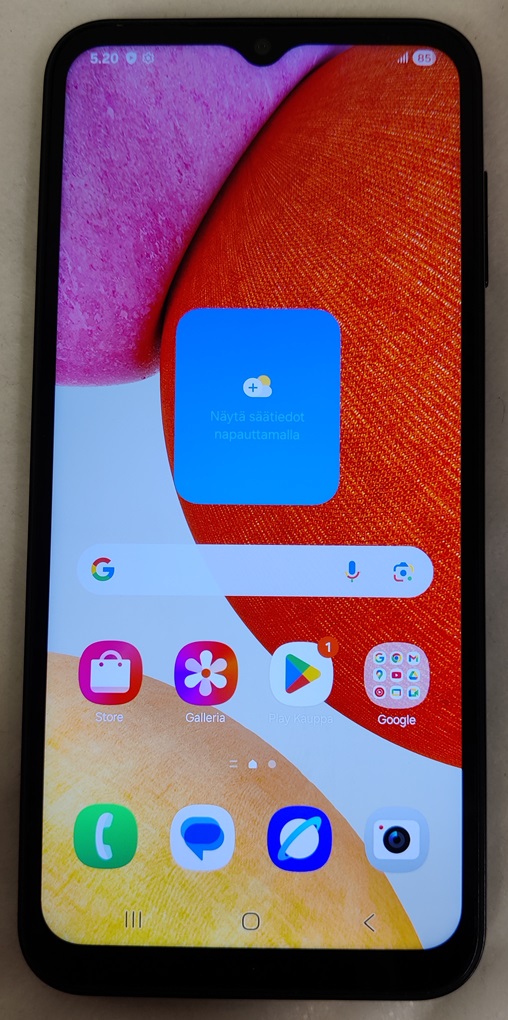 Samsung Galaxy A14, SM-A145R/DSN, 64Gb. Näytössä pieniä naarmuja ja kulumia. Takalasissa normaalia käytön jälkiä. Testattu ja toimiva