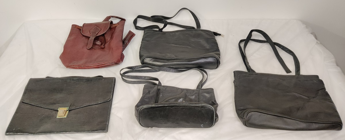 Erilaisia nahkalaukkuja, yhden nahkalaukun hihnan ommel pettänyt, muutoin ehjä!