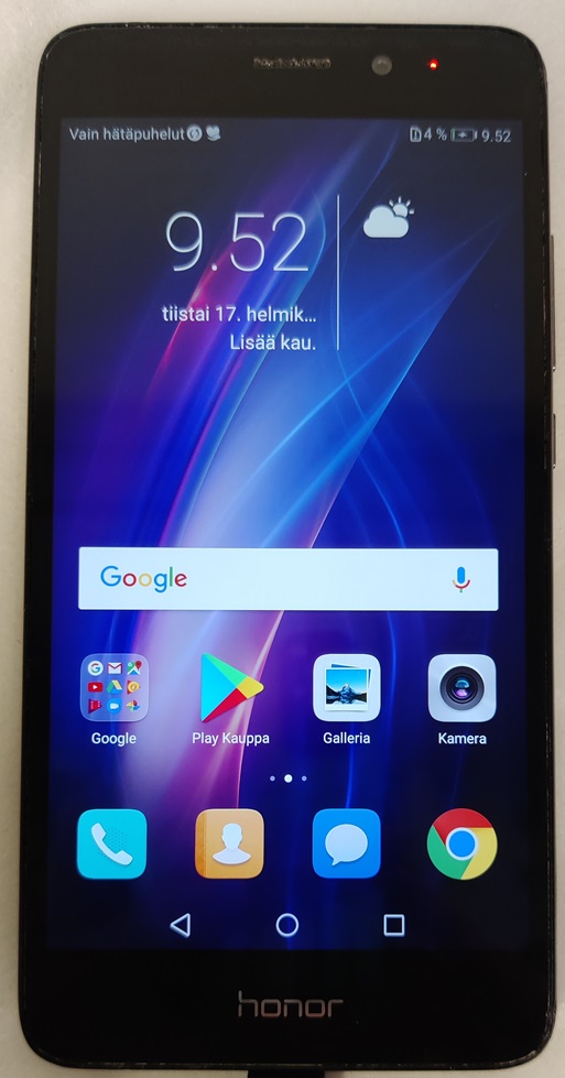 Huawei Honor 7 lite, nEM-L21, 16 Gt, lasissa naarmuja, käyttökulumaa takakannessa, testattu ja toimiva