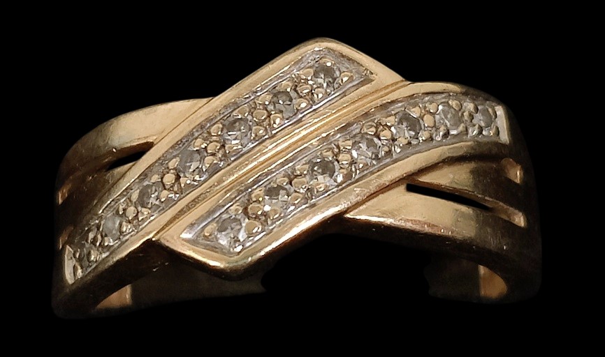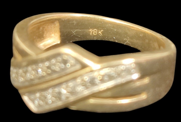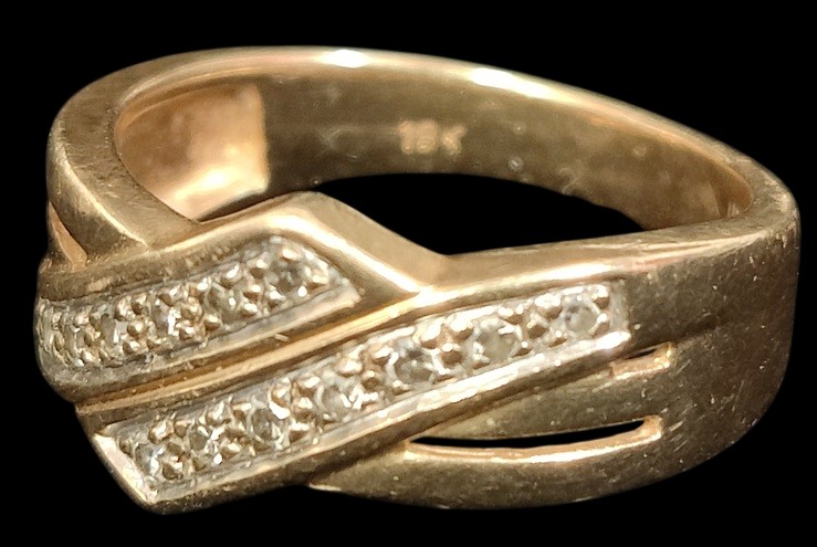 Keltakultainen timanttisormus, leimat GHA 18K (750), 14 kpl 0,01 ct timentteja, koko 16,5, paino noin 4,73gr, kaivertamaton
