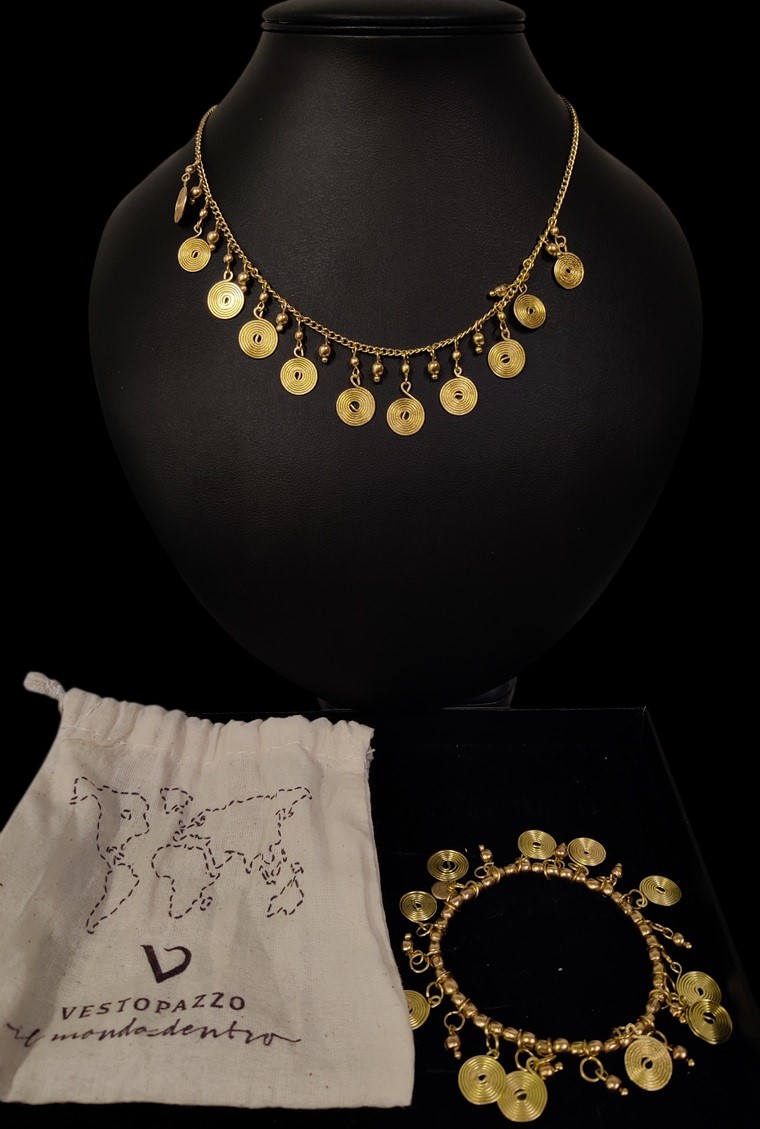 Vestopazzo Roma korusetti: kaulakoru ja rannekoru, joissa spiraaliriipuksia, messinkiä