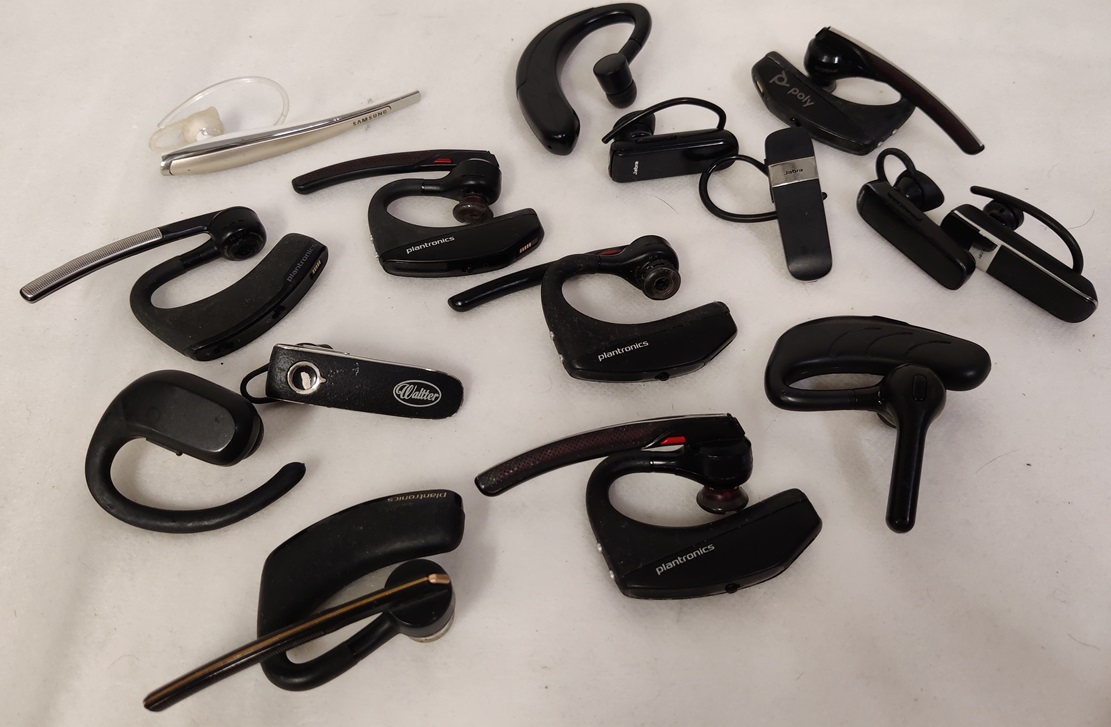 15 kpl erilaisia handsfree kuulokkeita, mm. Jabra ja Plantronics