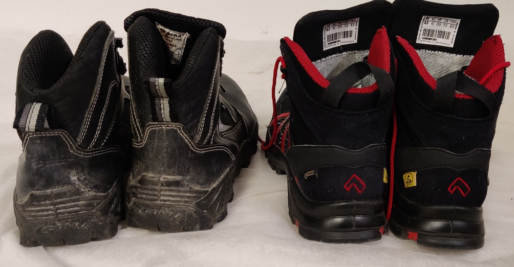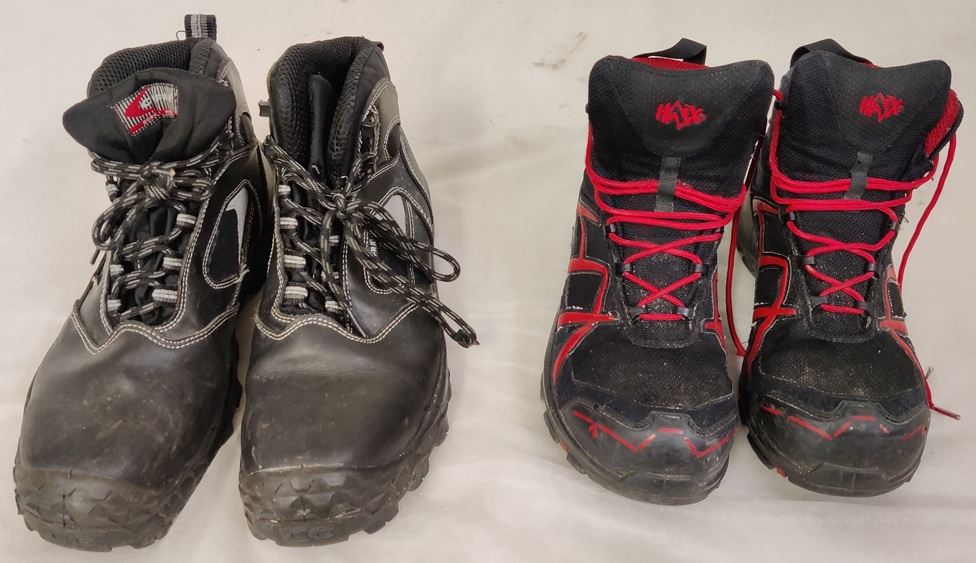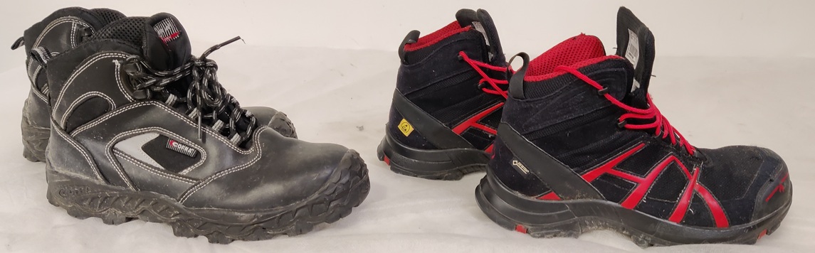 2 paria turvakenkiä; Haix Black Eagle Safety 40, S3-suojaluokka, goretex, koko 40, Cofra Weddell S3 SRC turvakenkä, täysin metallittomat kovakärkiset, koko 43