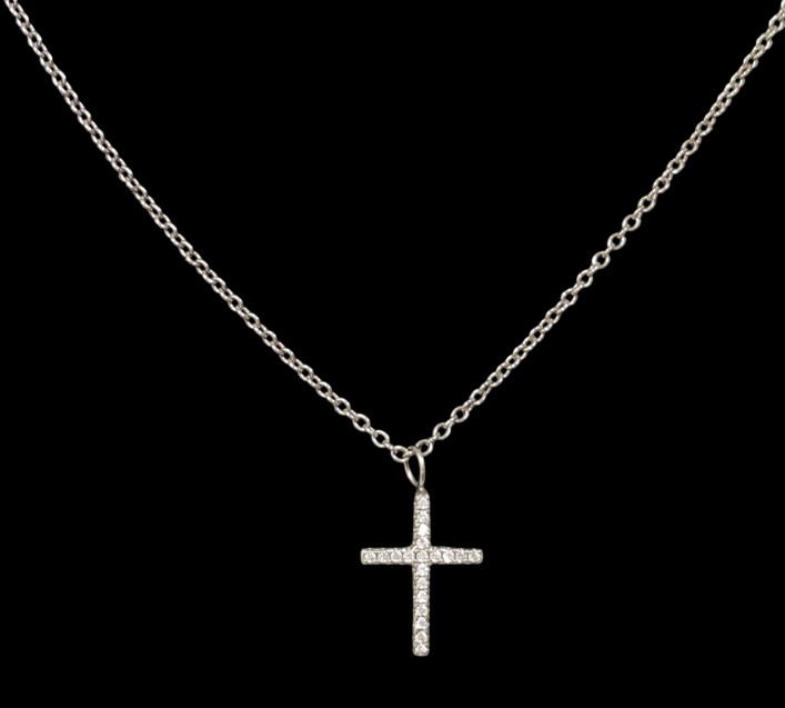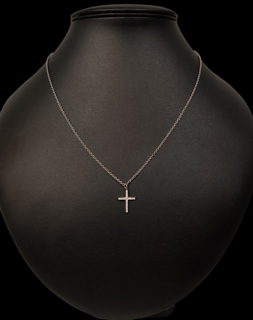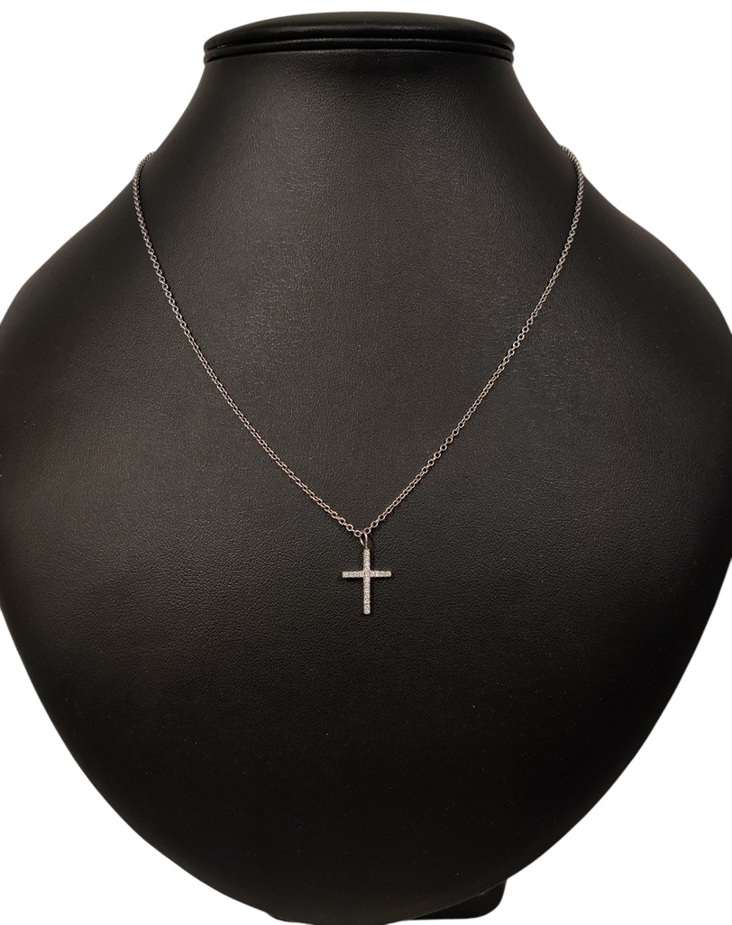 Hopeinen 925 kaulaketju, säädettävä pituus 44/47, kivikoristeinen risti, todennäköisesti terästä, ei leimoja, korkeus ketjulenkkeineen 2 cm