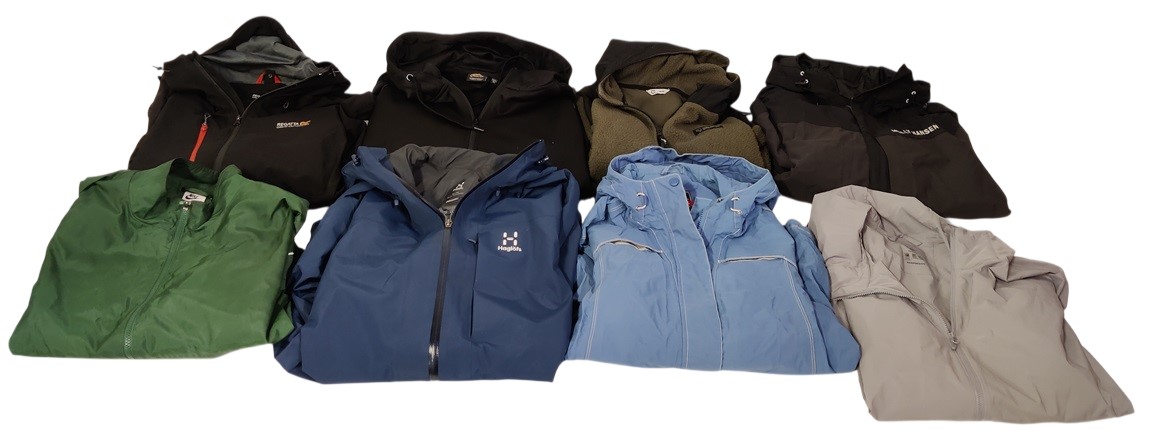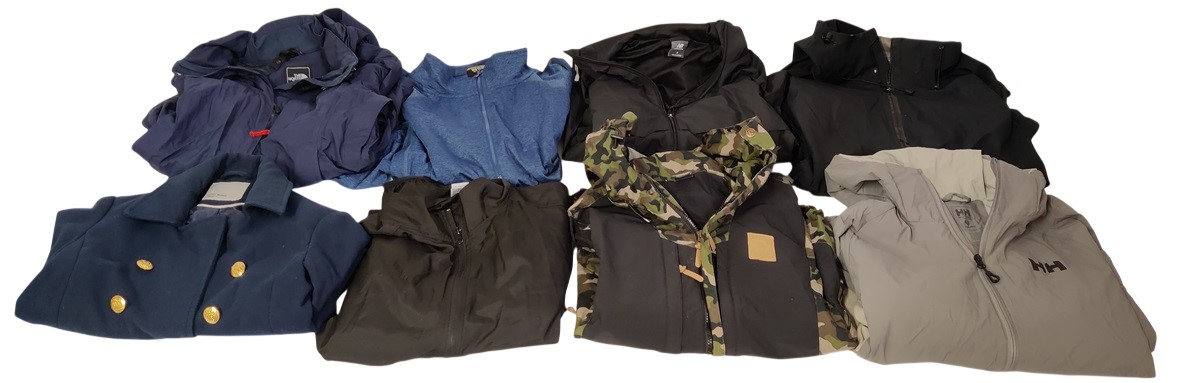 27 kpl erilaisia takkeja, mm. Helly Hansen, Haglöfs, Uniqlo, Nike, The North Face, Anar, New Balance, Vero Moda, Dressmann, SOC, Future Sport, 157