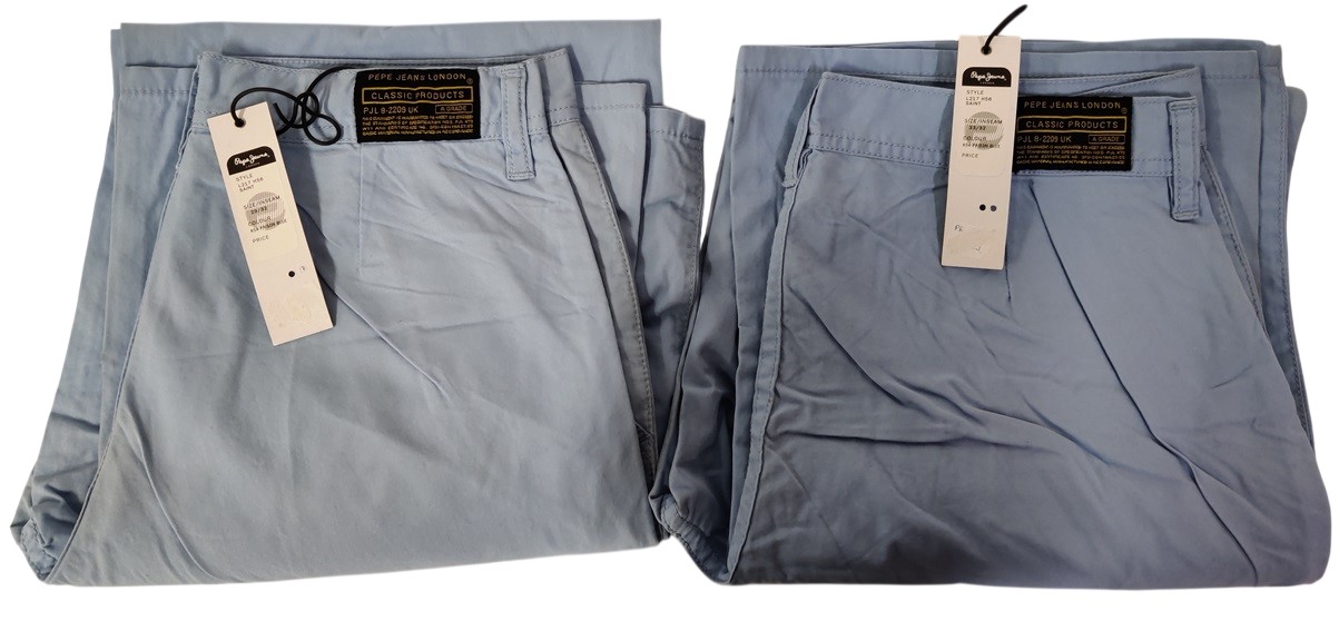 2 kpl pepe Jeans leveälahkeisia kangashousuja, eri kokoja, molemmat uusia ja käyttämättömiä, mutta varastoinnista on voinut tulla jotain pienetä pinttymää!