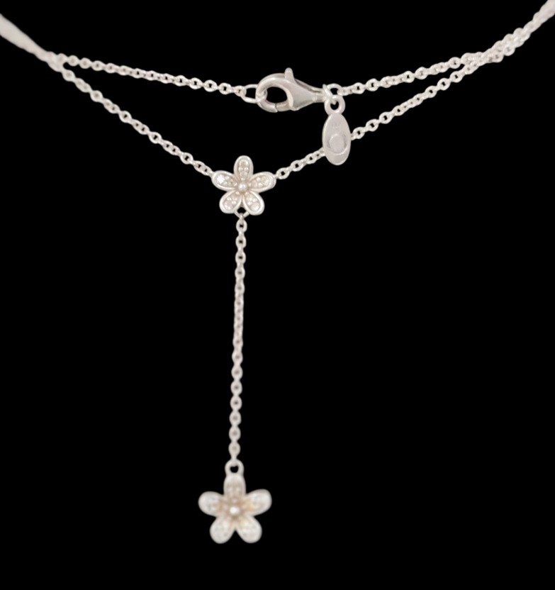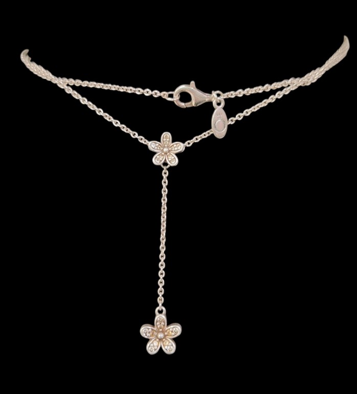 Pandora Dazzling Daisies hopeinen kaulakoru, hopean leima 925, ketju pituus 61 cm, riipusosa 4,5 cm, kaunis käyttövalmis koru!