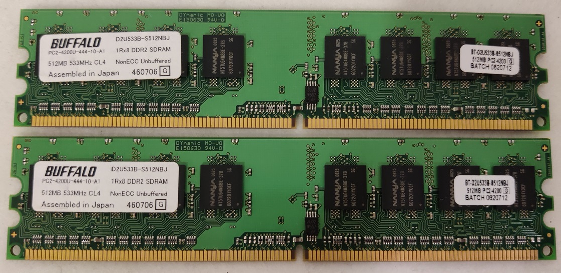 2x Buffalo 521MB DDR2 533Mhz CL4 muistikampoja. Ei testattu.