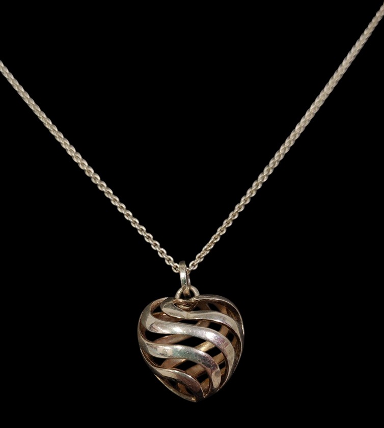 Hopeinen kaulaketju ja sydänriipus, ketjun pituus 45 cm, leimat 925, käyttövalmis koru, vaikka lahjaksi!
