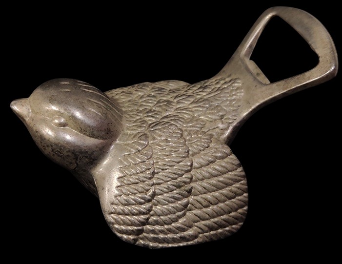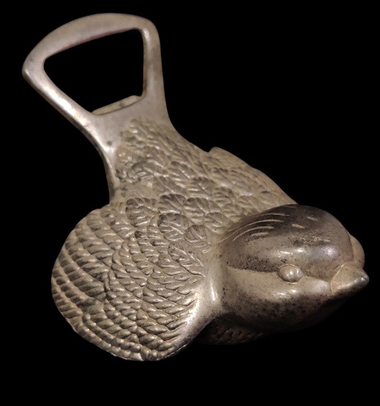 Hopeoitu lintu korkinavaaja - koriste-esine, hieman patinaa