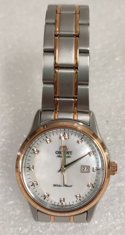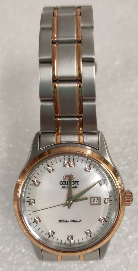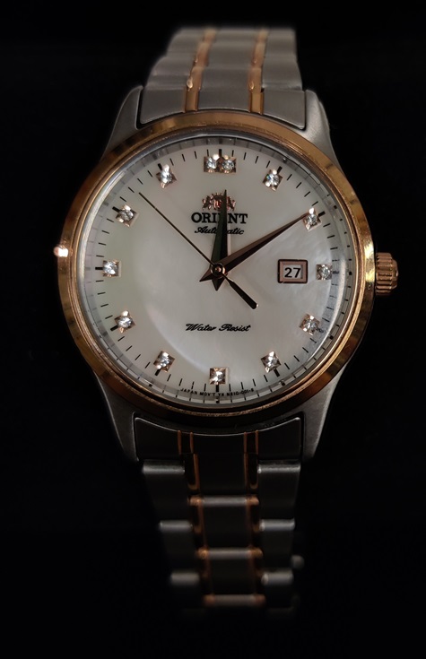 Orient naisten rannekello, Orient automatic, Svarowski koristeet numeroiden kohdalla, helmiäistaulu
