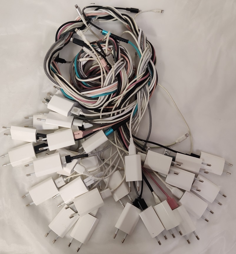 30 kpl apple 5 w usb-a latureita ja 30 kpl tarvikejohtoja