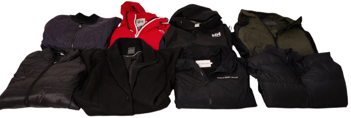 22 kpl välikausitakkeja, mm. Calvin Klein Jeans, Helly Hansen, Under Armour, Five Seasons, Nike, Luhta, Zara, Cross Sportswear