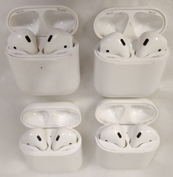 4 kpl Apple Airpods, A1602, akkutasoja ei testattu, kuulokkeet testattuja ja toimivia