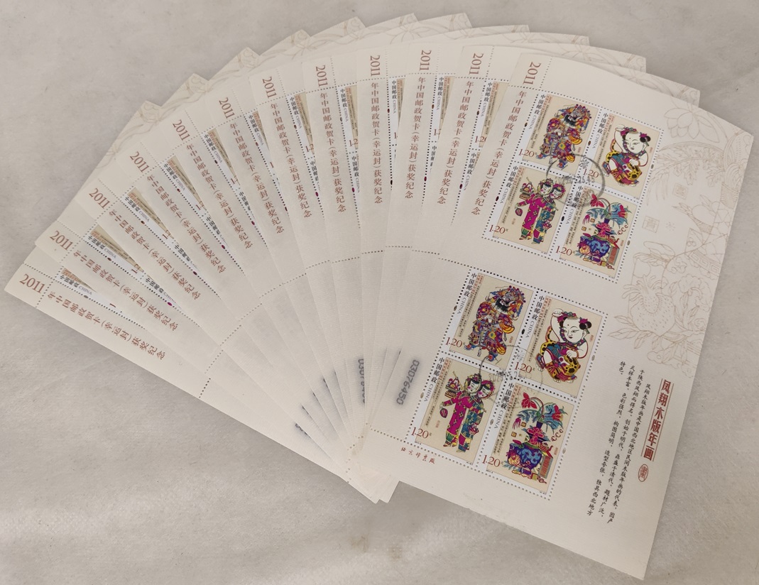 12 arkkia kiinalaisia 2011 tekstiillipinnoitettuja postimerkkejä