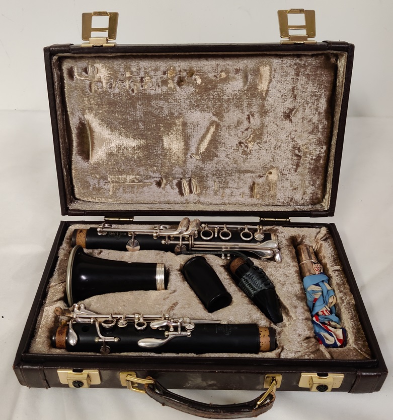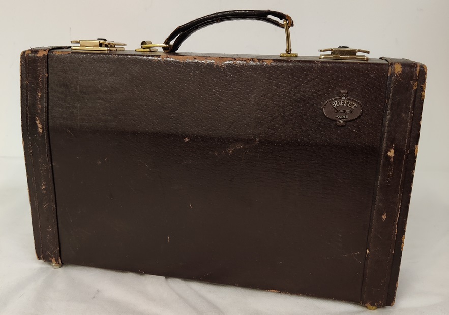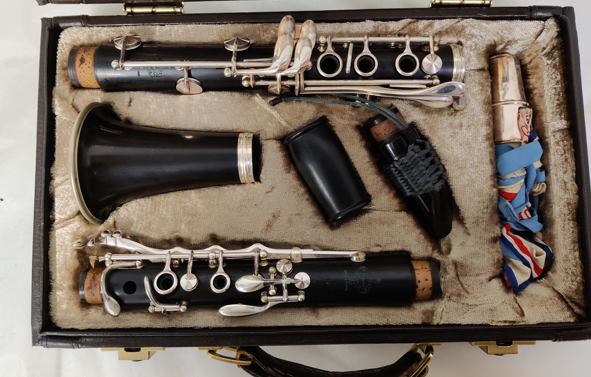 Ranskalainen Buffet Crampon klarinetti, C12, valmistusvuosi 1985, eurooppalainen viritystaso, sarjanumero F270013, edellyttää huoltoa, ollut käyttämättä säilytyslaatikossaan vuoden 2019 keväästä asti, muutoin ainakin päällisin puolin ehjä ja hyvälaatuinen