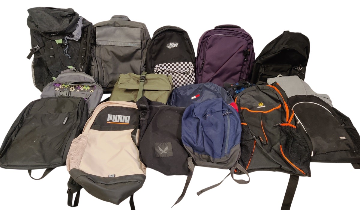Säkillinen erilaisia reppuja, noin 16 kpl
