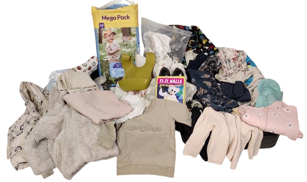 Iso matkalaukullinen sekalaista vauvan ja lastentarviketta