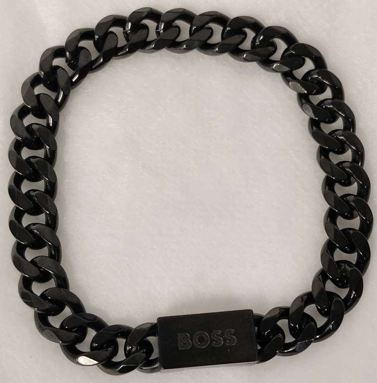 Musta BOSS teräsrannekoru, 19,5 cm, 9 mm leveä, käytövalmis koru!