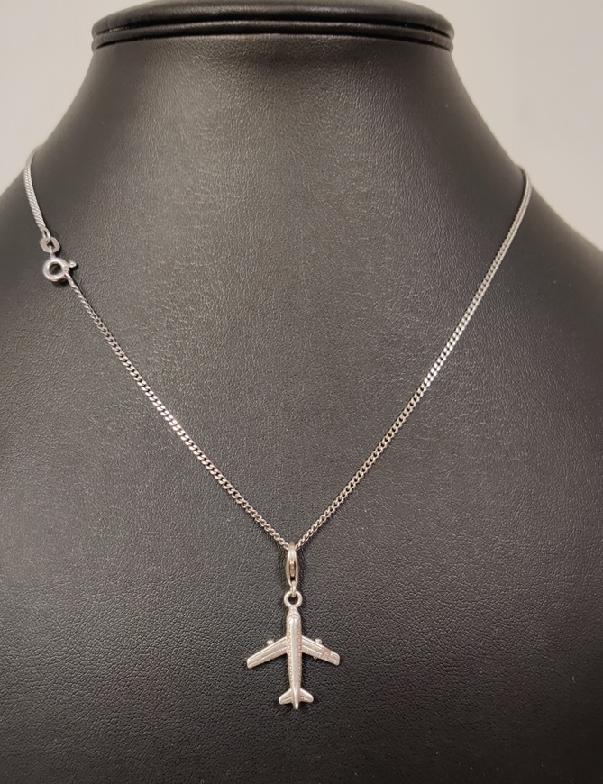Hopeinen 925 lentokone riipus, hopeinen 1,7mm paksuinen ketju, ketjun pituus 46 cm