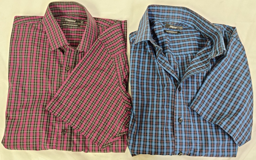 2 kpl miesten lyhythihaisia kauluspaitoja, Dressmann, easy care cotton, L (42/42), lähes uudenveroiset!