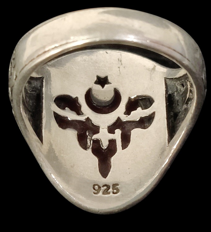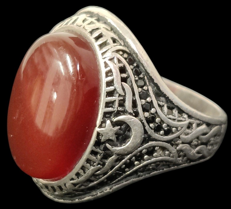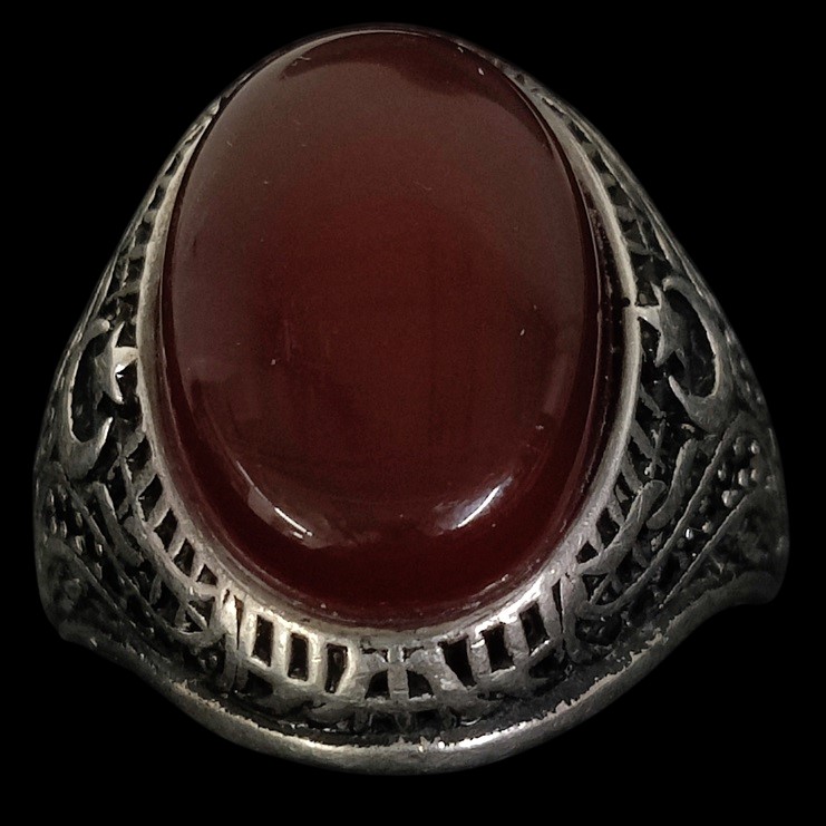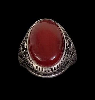 Miesten iso hopeinen sormus, punainen akaatti, koko noin 20,25, leima 925