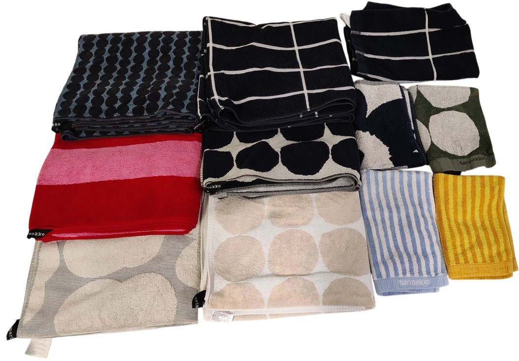 Marimekko -pyyhkeitä, 6 isoa ja 5 pienempää eri kokoista