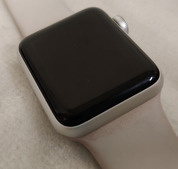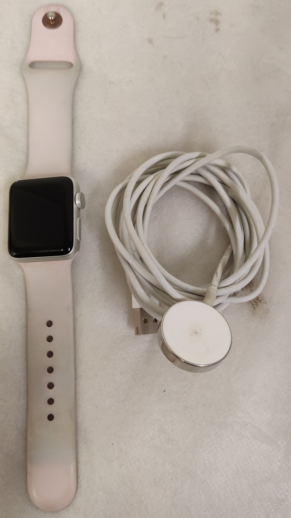 Apple Watch 3, GPS, 38 mm, lasissa pieni naarmu, pitkä laturijohto mukana, testattu ja toimiva