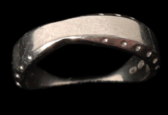 Valkokultainen sormus, 585, kaiverruksia, kivetön, koko n. 17,75, paino n. 7,20 gr