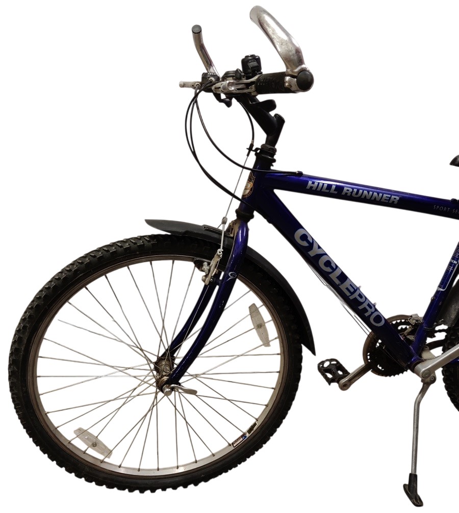 Cycle Pro Hill Runner 18" polkupyörä, 21 vaihdetta, käsijarrut ok, huollettava, keväthuolto tehtävä, renkaat tarkistettava, VAIN NOUTO