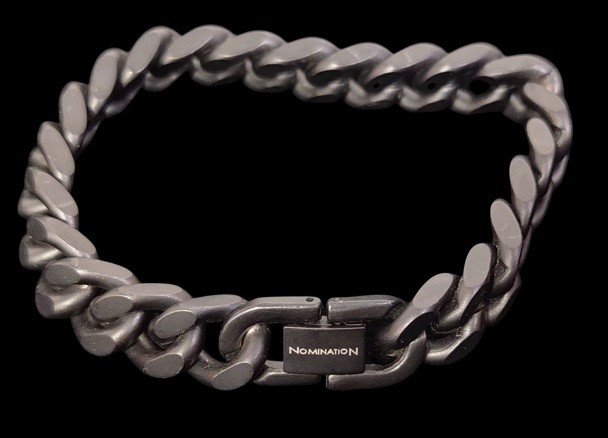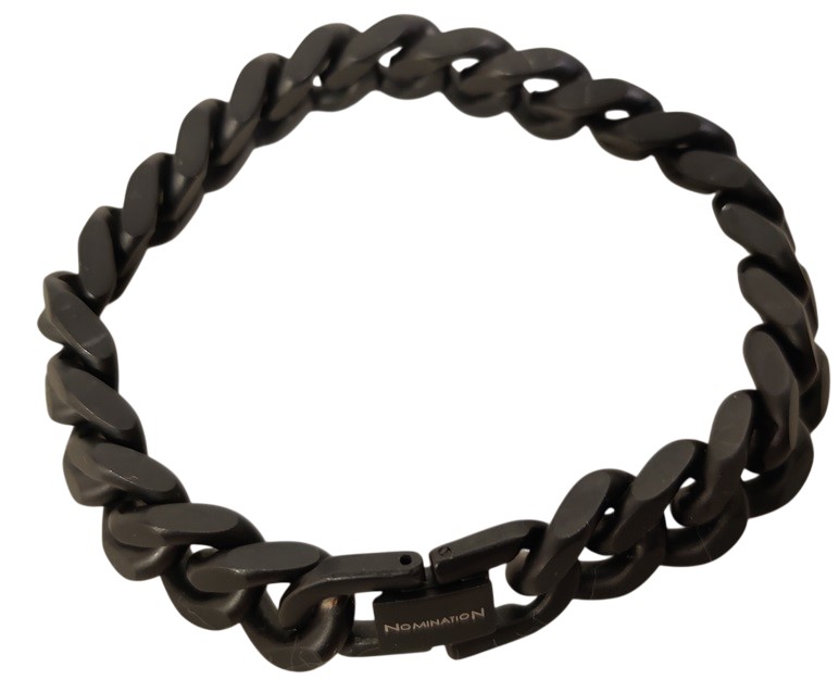 Musta teräksinen Nomination panssarirannekoru, leveys n. 11,2 mm, pituus n. 20 cm