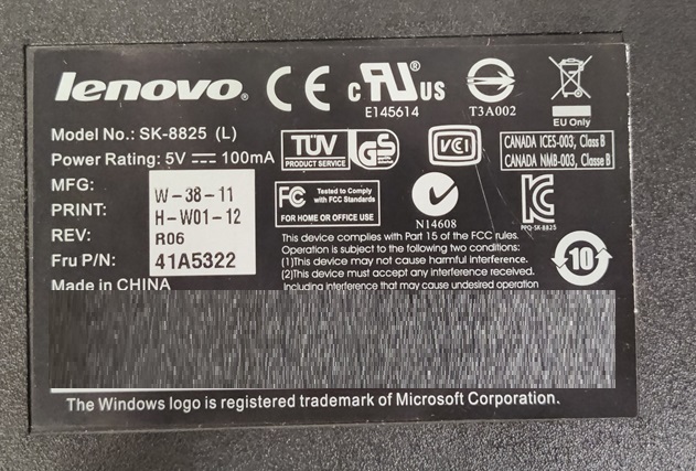 Lenovo näppäimistö, SK-8825, testattu ja toimiva