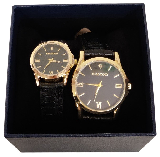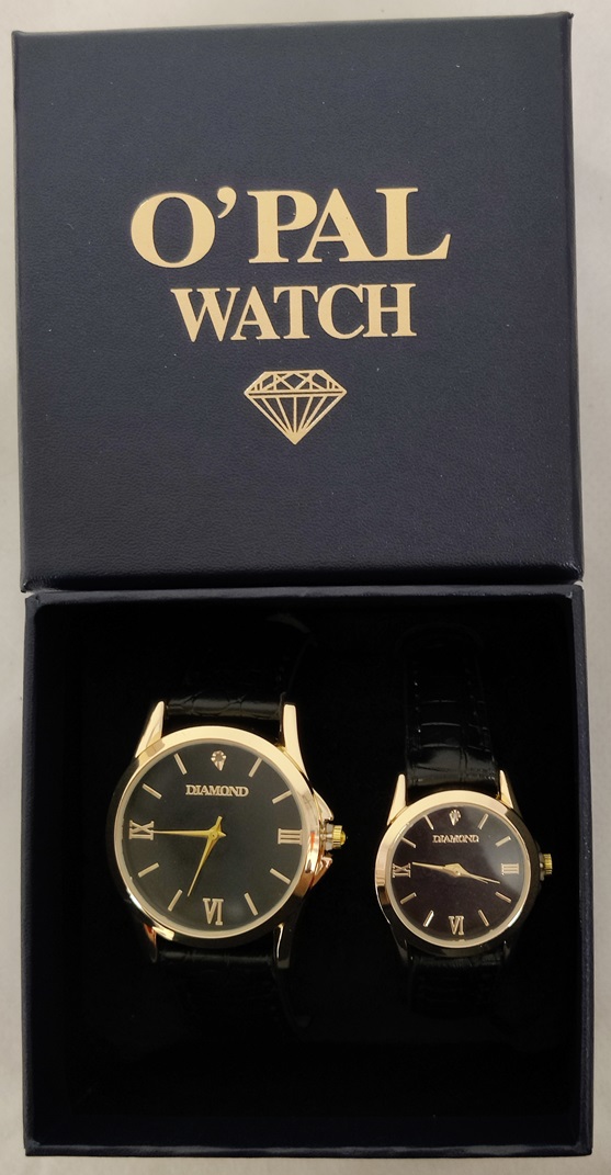 O'Pal Diamond rannekellosetti leveä & kapea malli, "His and Hers" lahjapakkaus, ei käyntitestattu